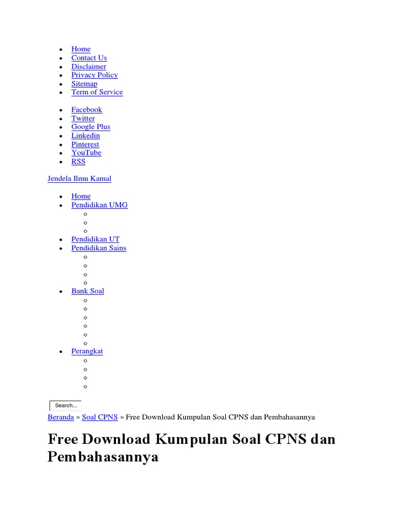 Kumpulan latihan soal tes cpns tahun 2021 dan pembahasannya. Menciptakan kerukunan hidup menuju masyarakat adil dan makmur 2. Kumpulan soal cpns dan pembahasan sebagai latihan cpns 2021, terdiri dari soal cpns seleksi kompetensi dasar (skd) dan soal cpns seleksi ko. Contoh soal tes skd dan skb. Contoh soal tes intelegensi umum (tiu) biasa disebut juga dengan potensi akademik ialah untuk menguji dan menilai kompetisi pelamar dalam kemampuan verbal.